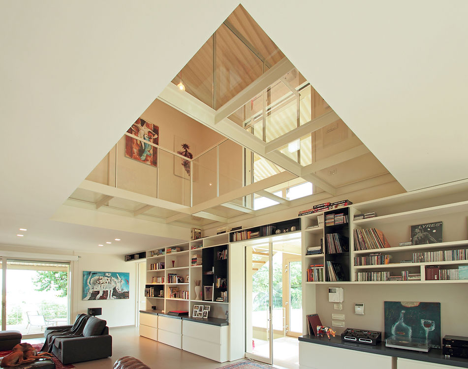 Consumi ridotti nel rispetto del paesaggio, con spazi contemporanei, relazione interno-esterno e una struttura in acciaio che ha ridotto i costi e i tempi di cantiere.